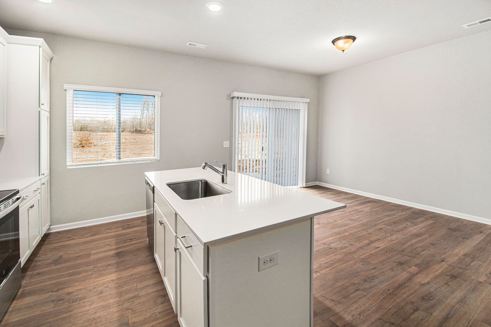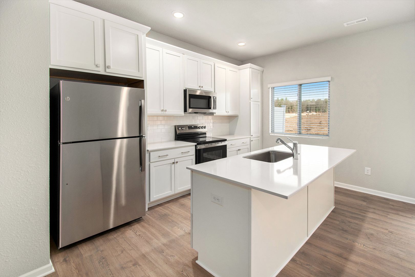 The main level features an open‑concept layout with a spacious great room that flows seamlessly into the kitchen and dining nook—ideal for everyday living and entertaining. The kitchen is equipped with a stainless steel appliance package, providing both modern style and everyday functionality. A washer and dryer are included, making move‑in and daily routines effortless.