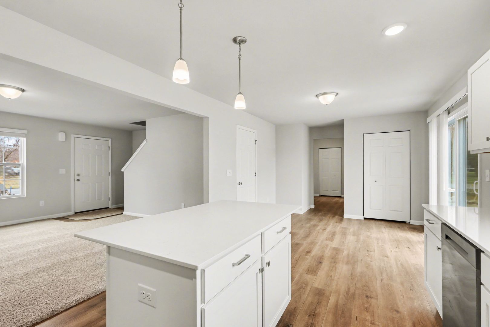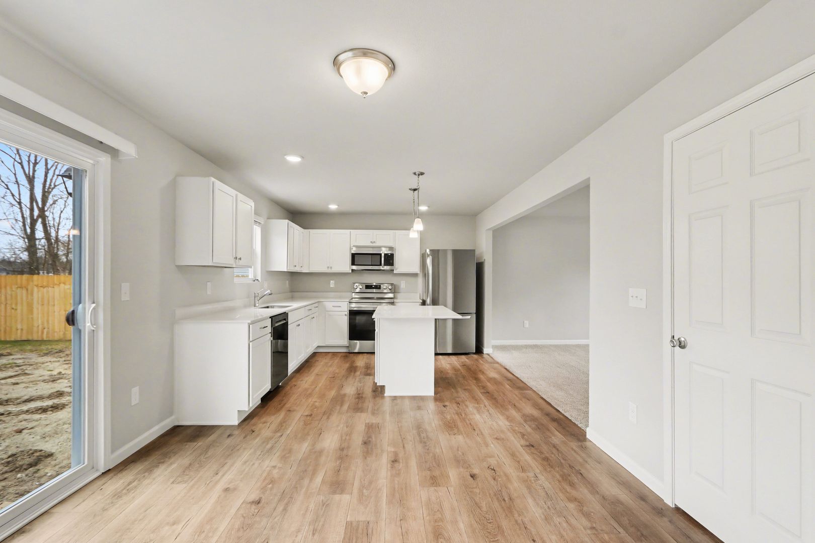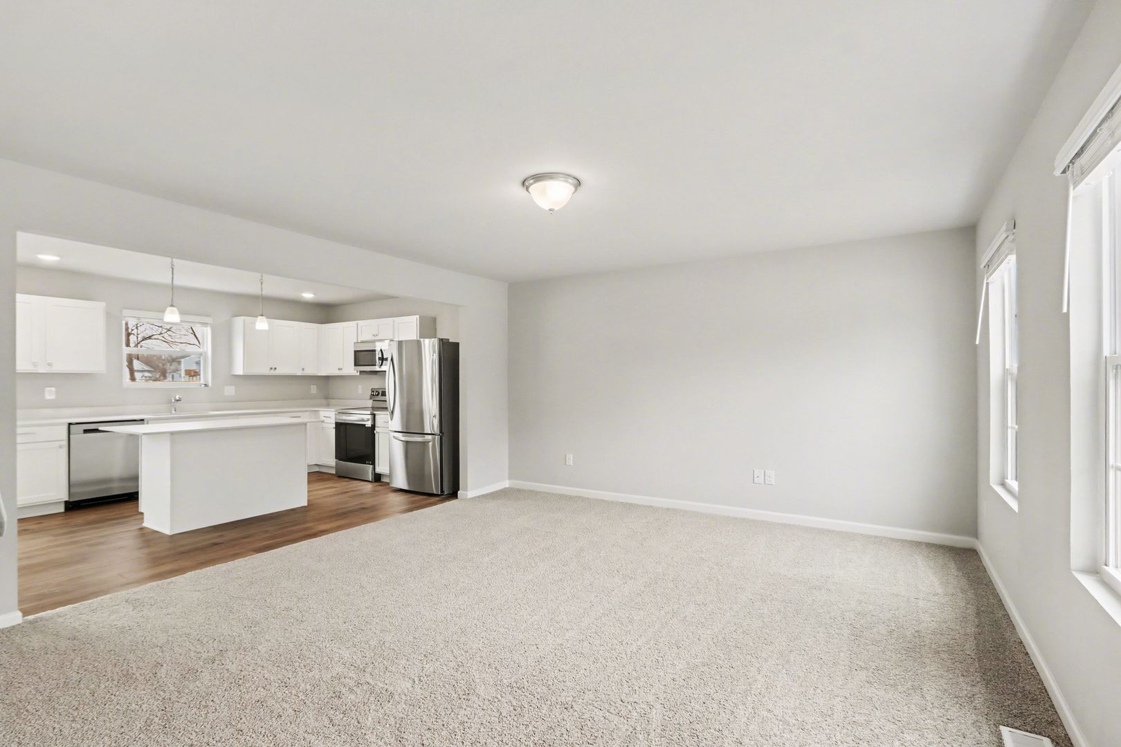 From the moment you step onto the covered porch and into the inviting foyer, you will appreciate the thoughtful layout. The main level features an open-concept design with a spacious great room that flows seamlessly into the kitchen and dining nook, perfect for entertaining or everyday living. The kitchen comes fully equipped with stainless steel range, dishwasher, and refrigerator, offering both style and functionality.
