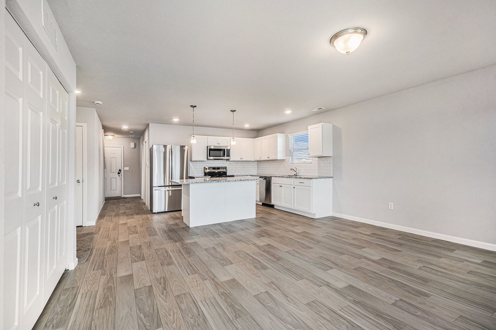 Enjoy the perks of a brand new single-family home, in this newly completed neighborhood without the hassle of homeownership. This large yard will be newly landscaped in the spring, providing you space to entertain and create memories that last a lifetime. The included 2 car garage provides room to keep your car warm and ice-free in the winter so your loved ones get a toasty warm ride on the most frigid day. An included washer and dryer saves time and energy from driving to the laundromat allowing you to simply kick back in your favorite chair and relax. The stainless steel appliance package gives you a kitchen fit for a chef that will have your friends thinking your Gordon Ramsey and begging to come to your parties.