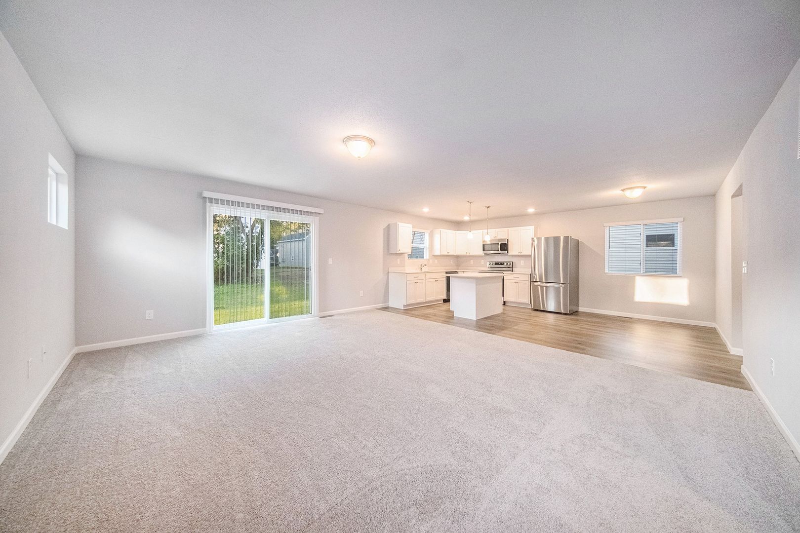 Open-concept great room, kitchen, and dining nook